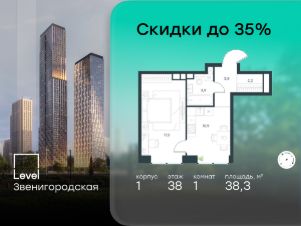 В жилом квартале продаётся 1-комнатная квартира площадью 38.30 кв.м white box. Квартира расположена на 38 этаже 48 этажного корпуса 1 в жилом комплексе комфорт класса Level Звенигородская (компания Level Group/Левел групп).
