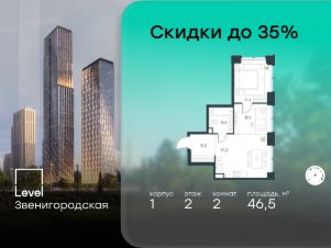 В жилом квартале продаётся 2-комнатная квартира площадью 46.50 кв.м white box. Квартира расположена на 2 этаже 48 этажного корпуса 1 в жилом комплексе комфорт класса Level Звенигородская (компания Level Group/Левел групп).