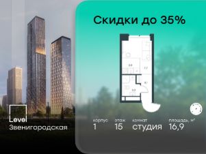 В жилом квартале продаётся студия площадью 16.90 кв.м white box. Квартира расположена на 15 этаже 48 этажного корпуса 1 в жилом комплексе комфорт класса Level Звенигородская (компания Level Group/Левел групп).