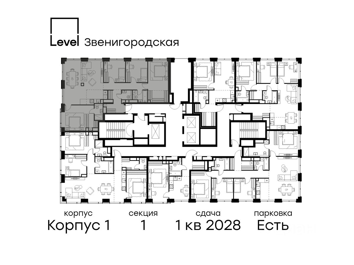 В жилом квартале продаётся многокомнатная квартира площадью 116.80 кв.м white box. Квартира расположена на 33 этаже 48 этажного корпуса 1 в жилом комплексе комфорт класса Level Звенигородская (компания Level Group/Левел групп).