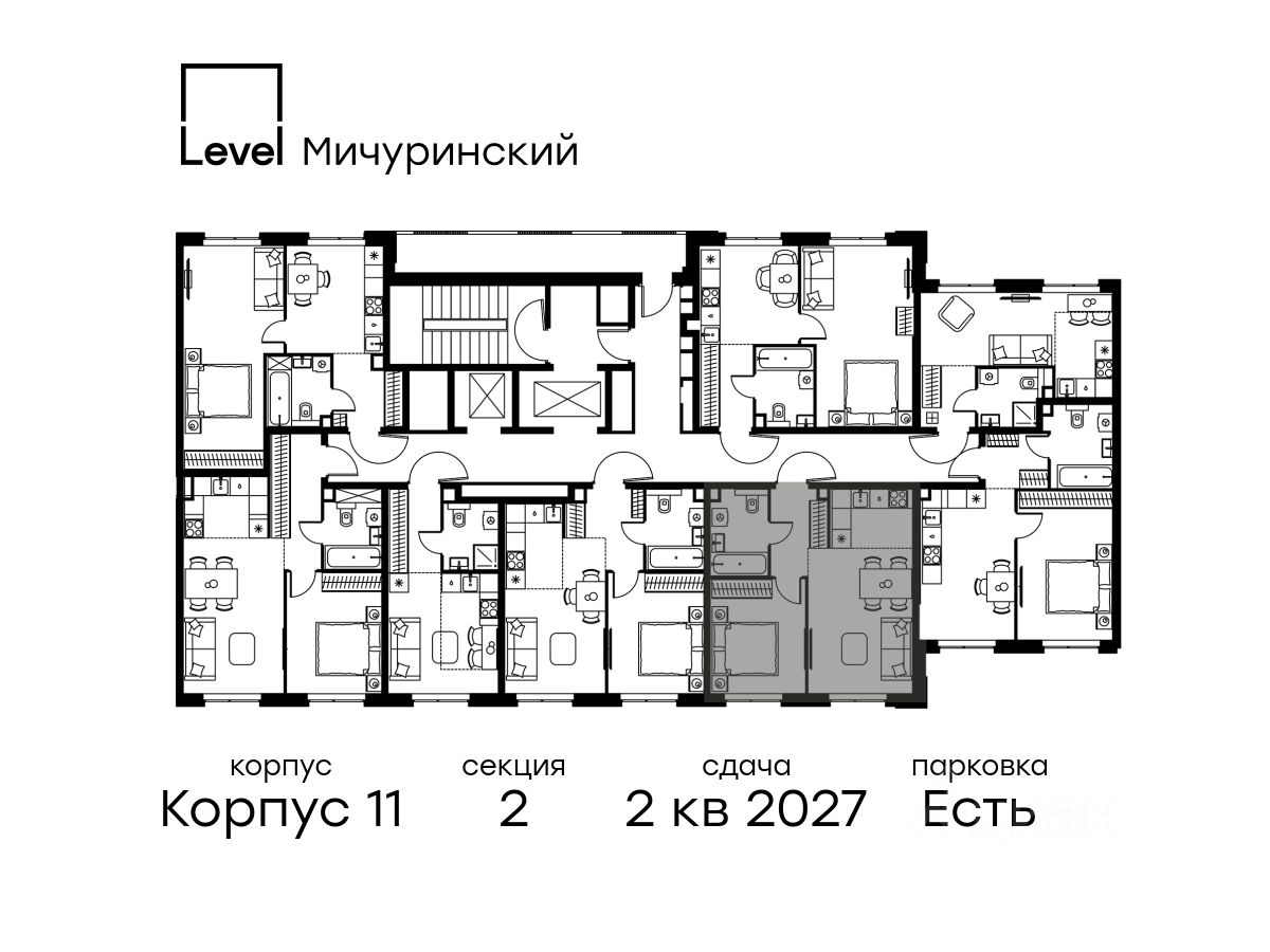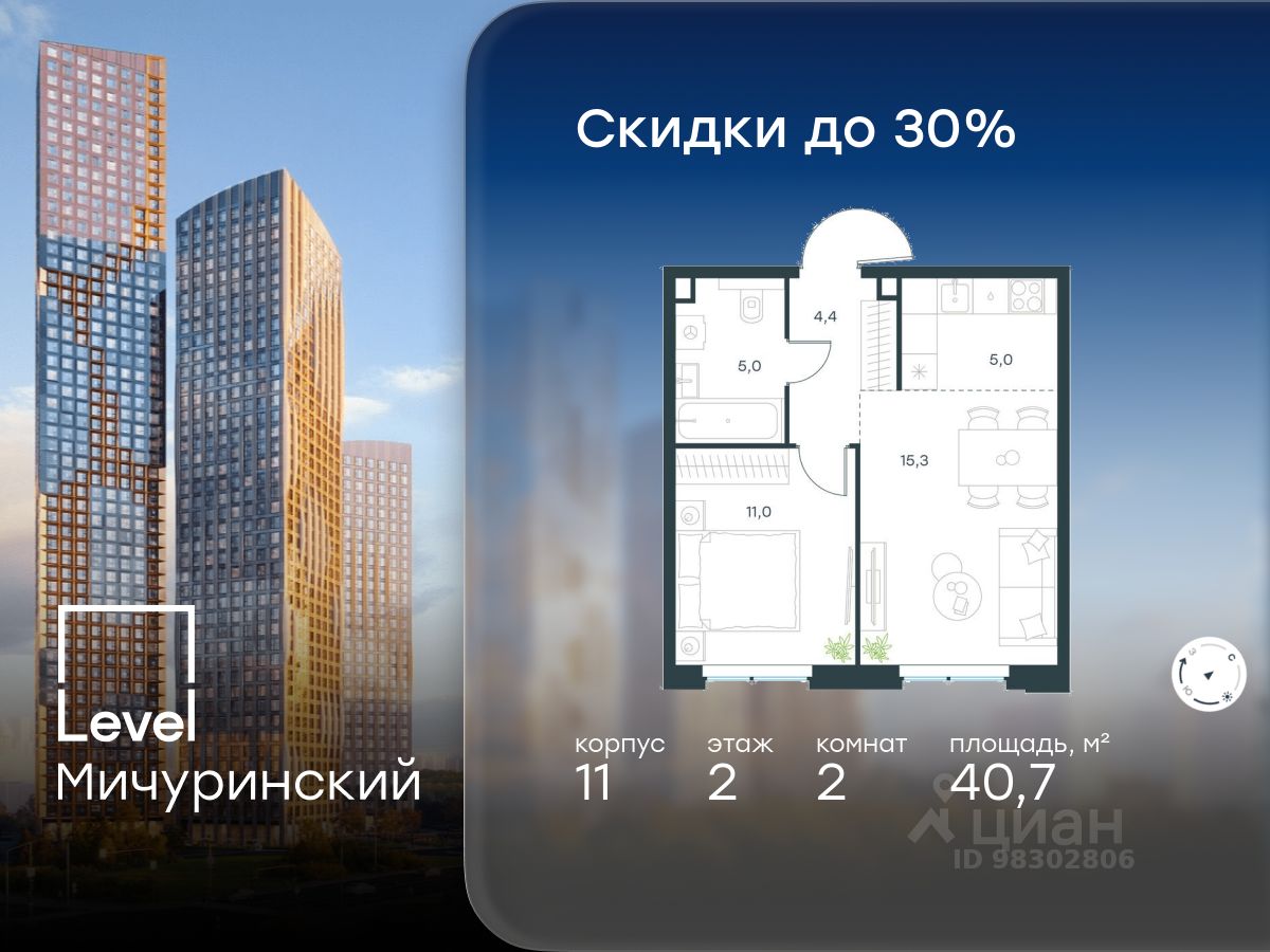 В жилом квартале, расположенном на границе с природным заказником "Долина реки Очаковки", продаётся 2-комнатная квартира площадью 40.70 кв.м без отделки. Квартира расположена на 2 этаже 24-этажного корпуса 11 в жилом комплексе бизнес-класса Level Мичуринский (компания Level Group/Левел групп).