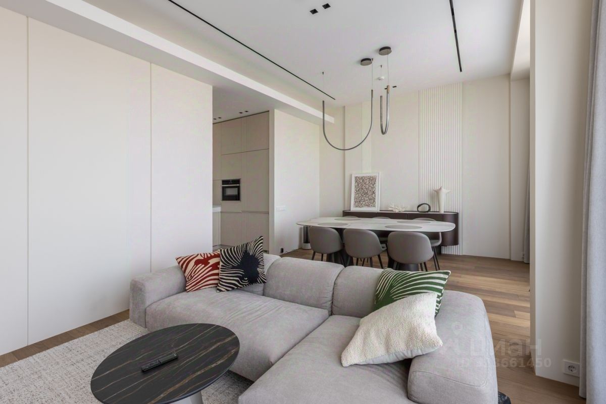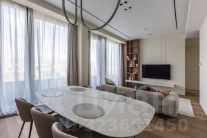 Эксклюзивный трехкомнатный пентхаус в жилом комплексе премиум-класса "SLAVA", из окон и террасы которого открываются захватывающие панорамные виды на динамичную Москву.