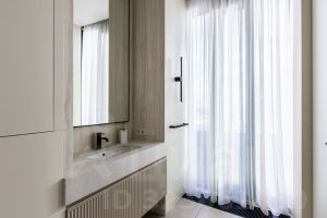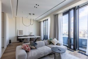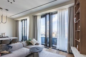 В отделке пентхауса использованы натуральные материалы премиум-класса, привезенные напрямую из Италии. Кухня оборудована современной встроенной техникой от ведущих европейских брендов NEFF и ASKO. Итальянская мебель и сантехника подчеркивают изысканный стиль и функциональность пространства.