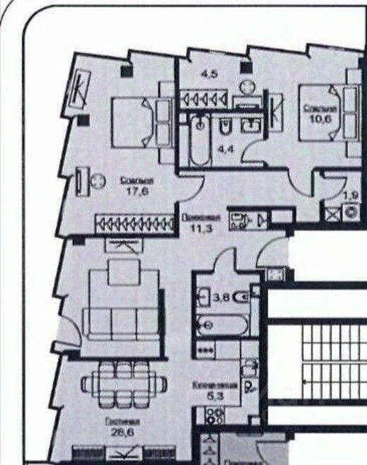 • Высота потолков 3,4 метра создает ощущение простора и свободы.