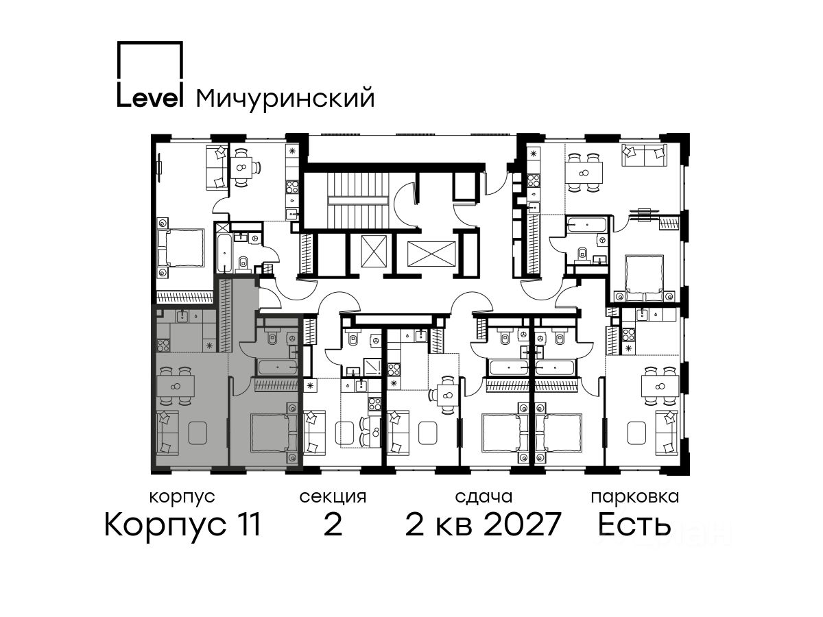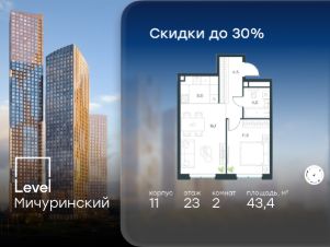 В жилом квартале, расположенном на границе с природным заказником "Долина реки Очаковки", продаётся 2-комнатная квартира площадью 43.40 кв.м без отделки. Квартира расположена на 23 этаже 24-этажного корпуса 11 в жилом комплексе бизнес-класса Level Мичуринский (компания Level Group/Левел групп).