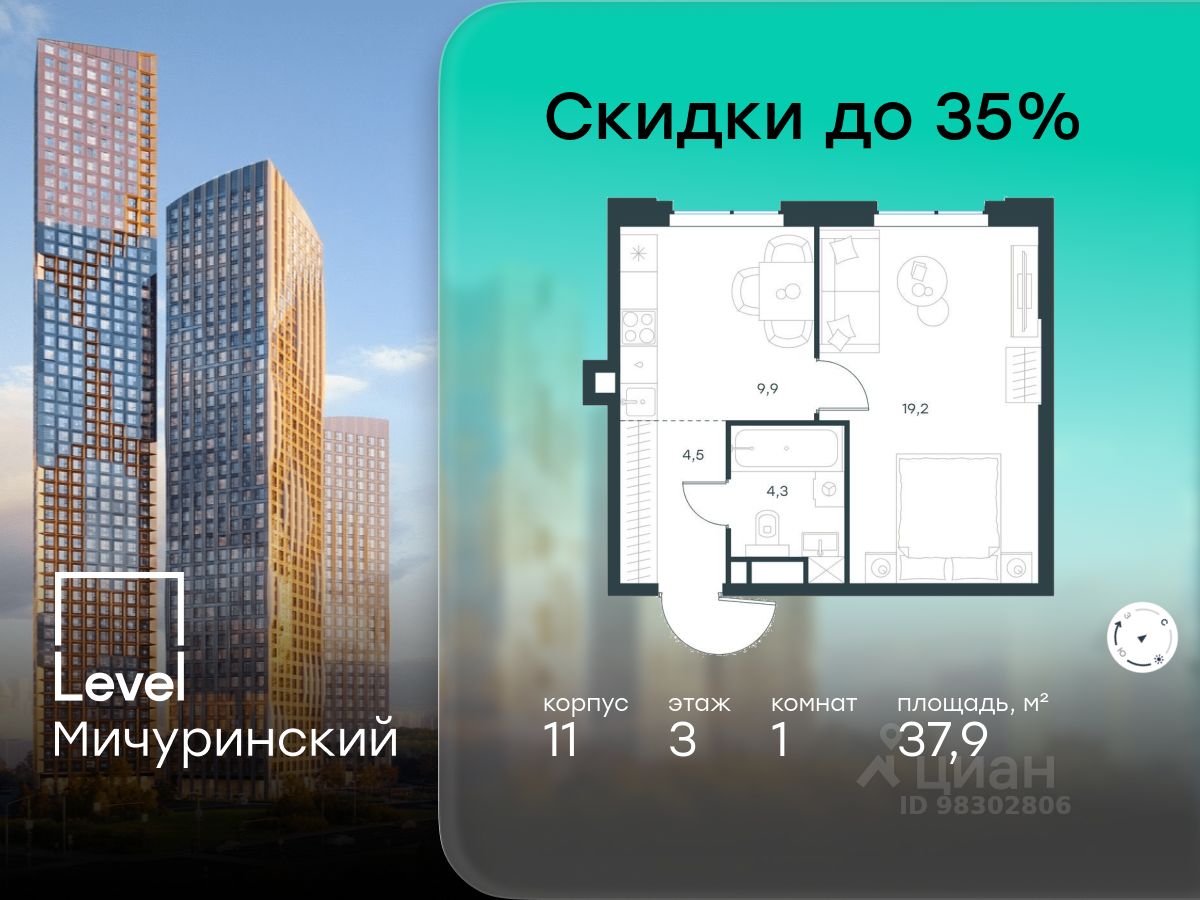 В жилом квартале, расположенном на границе с природным заказником "Долина реки Очаковки", продаётся 1-комнатная квартира площадью 37.90 кв.м без отделки. Квартира расположена на 3 этаже 24-этажного корпуса 11 в жилом комплексе бизнес-класса Level Мичуринский (компания Level Group/Левел групп).