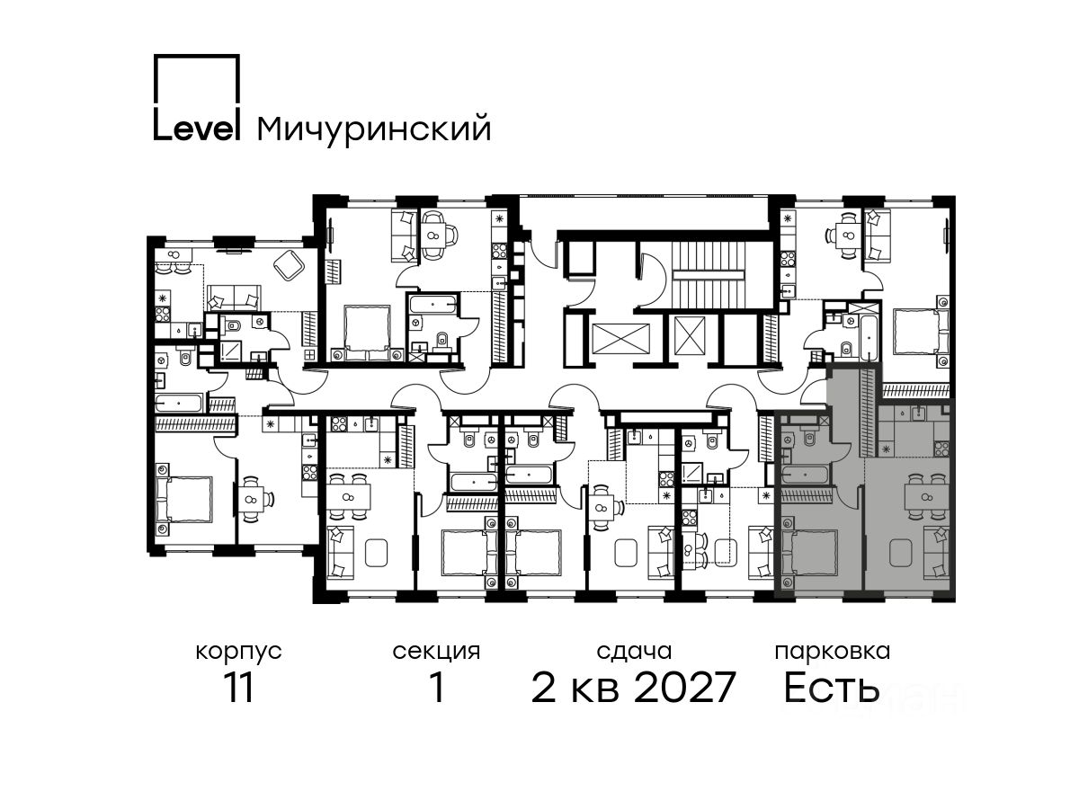 В жилом квартале, расположенном на границе с природным заказником "Долина реки Очаковки", продаётся 2-комнатная квартира площадью 42.60 кв.м с отделкой white box. Квартира расположена на 3 этаже 24-этажного корпуса 11 в жилом комплексе бизнес-класса Level Мичуринский (компания Level Group/Левел групп).