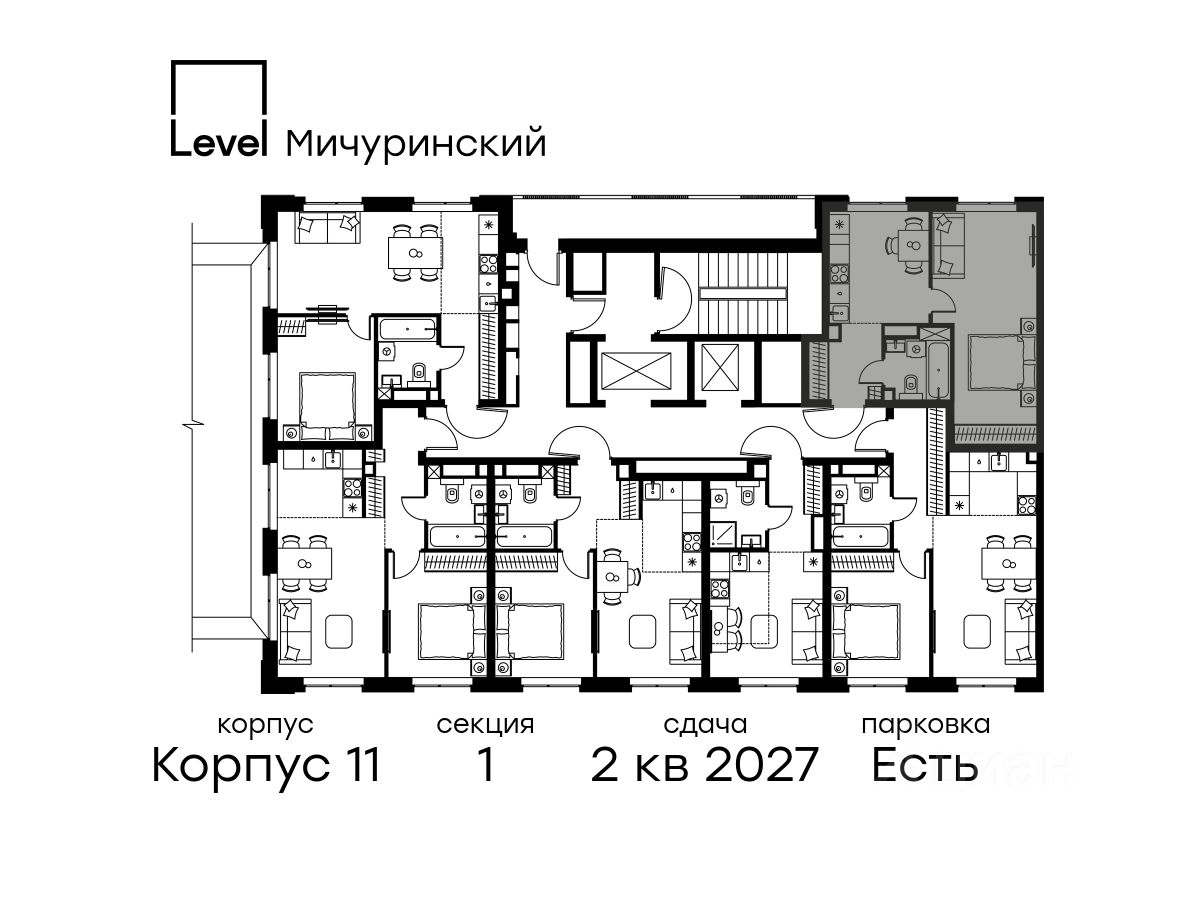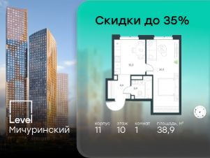 В жилом квартале, расположенном на границе с природным заказником "Долина реки Очаковки", продаётся 1-комнатная квартира площадью 38.90 кв.м с отделкой white box. Квартира расположена на 10 этаже 24-этажного корпуса 11 в жилом комплексе бизнес-класса Level Мичуринский (компания Level Group/Левел групп).
