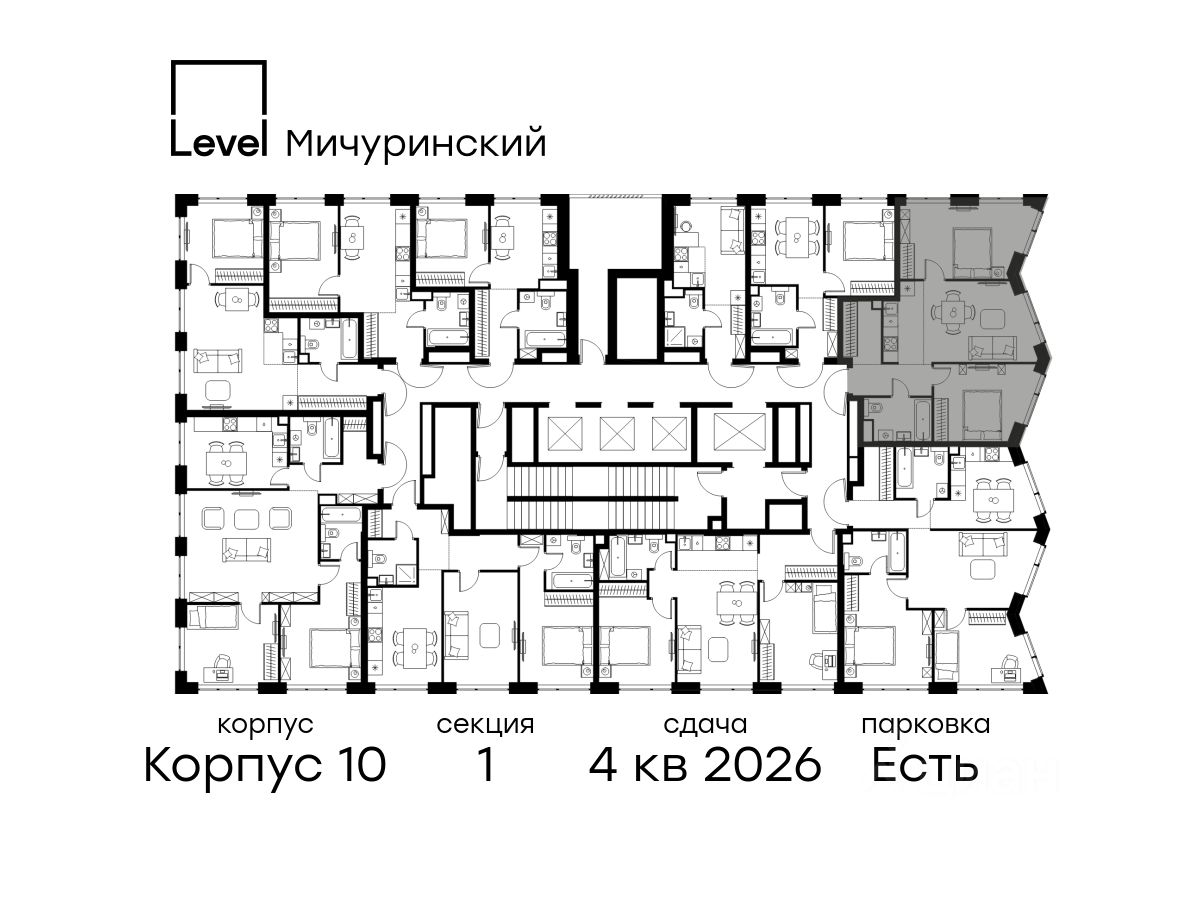 В жилом квартале, расположенном на границе с природным заказником "Долина реки Очаковки", продаётся 3-комнатная квартира площадью 59.90 кв.м с отделкой white box. Квартира расположена на 2 этаже 42-этажного корпуса 10 в жилом комплексе бизнес-класса Level Мичуринский (компания Level Group/Левел групп).