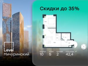 В жилом квартале, расположенном на границе с природным заказником "Долина реки Очаковки", продаётся 2-комнатная квартира площадью 42.40 кв.м с отделкой white box. Квартира расположена на 5 этаже 42-этажного корпуса 10 в жилом комплексе бизнес-класса Level Мичуринский (компания Level Group/Левел групп).