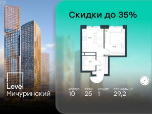 В жилом квартале, расположенном на границе с природным заказником "Долина реки Очаковки", продаётся 1-комнатная квартира площадью 29.20 кв.м с отделкой white box. Квартира расположена на 25 этаже 42-этажного корпуса 10 в жилом комплексе бизнес-класса Level Мичуринский (компания Level Group/Левел групп).