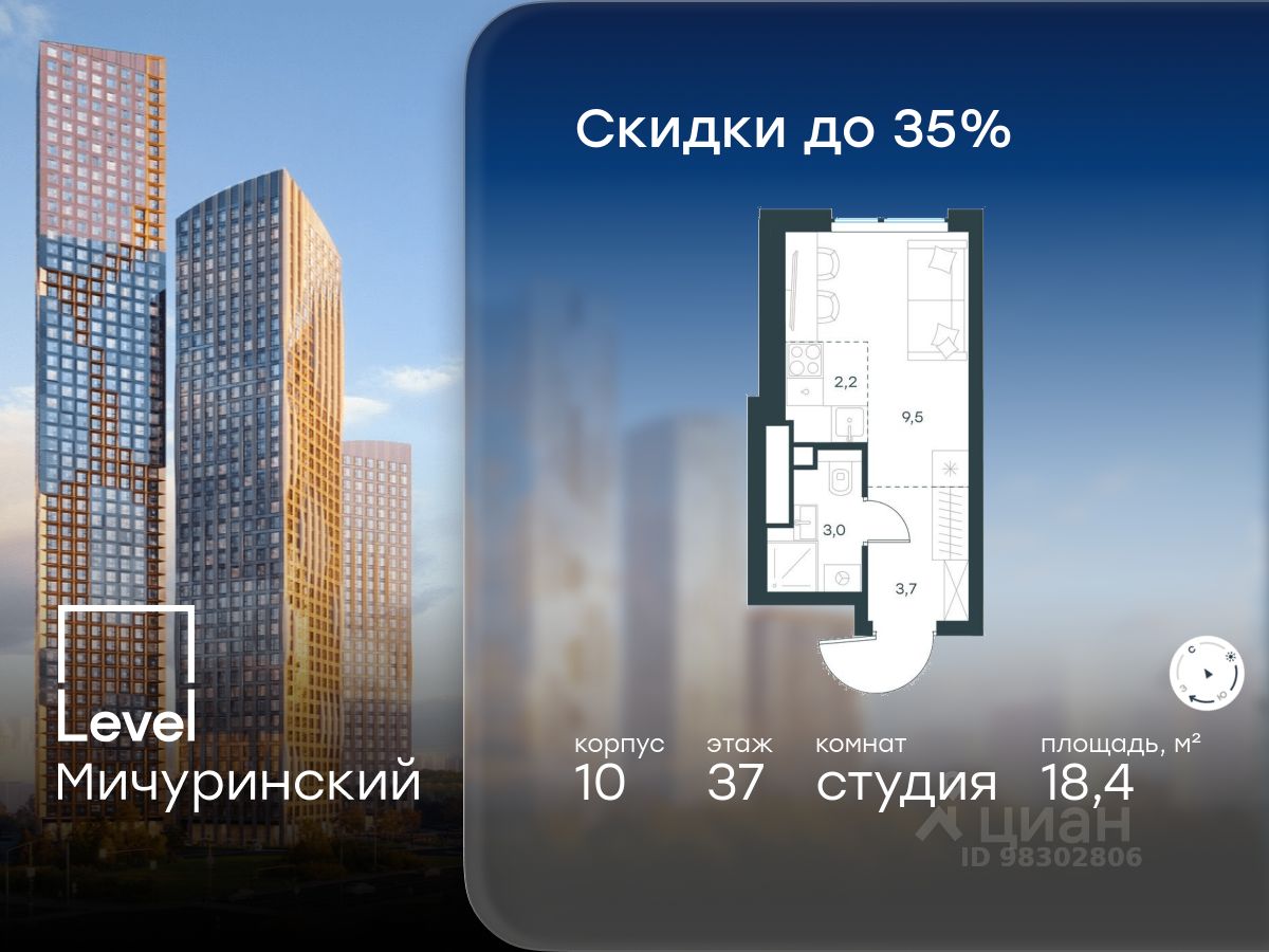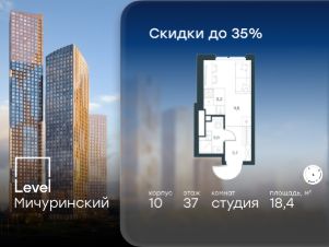 В жилом квартале, расположенном на границе с природным заказником "Долина реки Очаковки", продаётся студия площадью 18.40 кв.м с отделкой white box. Квартира расположена на 37 этаже 42-этажного корпуса 10 в жилом комплексе бизнес-класса Level Мичуринский (компания Level Group/Левел групп).
