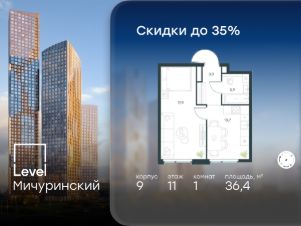 В жилом квартале, расположенном на границе с природным заказником "Долина реки Очаковки", продаётся 1-комнатная квартира площадью 36.40 кв.м без отделки. Квартира расположена на 11 этаже 12-этажного корпуса 9 в жилом комплексе бизнес-класса Level Мичуринский (компания Level Group/Левел групп).