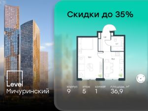 В жилом квартале, расположенном на границе с природным заказником "Долина реки Очаковки", продаётся 1-комнатная квартира площадью 36.90 кв.м без отделки. Квартира расположена на 5 этаже 12-этажного корпуса 9 в жилом комплексе бизнес-класса Level Мичуринский (компания Level Group/Левел групп).
