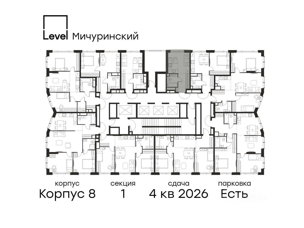 В жилом квартале, расположенном на границе с природным заказником "Долина реки Очаковки", продаётся студия площадью 21.90 кв.м без отделки. Квартира расположена на 28 этаже 48-этажного корпуса 8 в жилом комплексе бизнес-класса Level Мичуринский (компания Level Group/Левел групп).