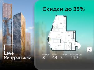 В жилом квартале, расположенном на границе с природным заказником "Долина реки Очаковки", продаётся 3-комнатная квартира площадью 54.20 кв.м без отделки. Квартира расположена на 44 этаже 48-этажного корпуса 8 в жилом комплексе бизнес-класса Level Мичуринский (компания Level Group/Левел групп).