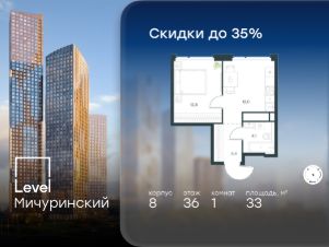 В жилом квартале, расположенном на границе с природным заказником "Долина реки Очаковки", продаётся 1-комнатная квартира площадью 33.00 кв.м без отделки. Квартира расположена на 36 этаже 48-этажного корпуса 8 в жилом комплексе бизнес-класса Level Мичуринский (компания Level Group/Левел групп).