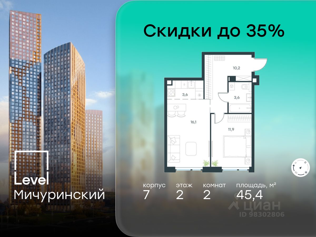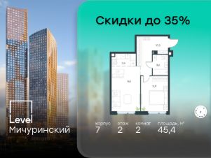 В жилом квартале, расположенном на границе с природным заказником "Долина реки Очаковки", продаётся 2-комнатная квартира площадью 45.40 кв.м без отделки. Квартира расположена на 2 этаже 24-этажного корпуса 7 в жилом комплексе бизнес-класса Level Мичуринский (компания Level Group/Левел групп).