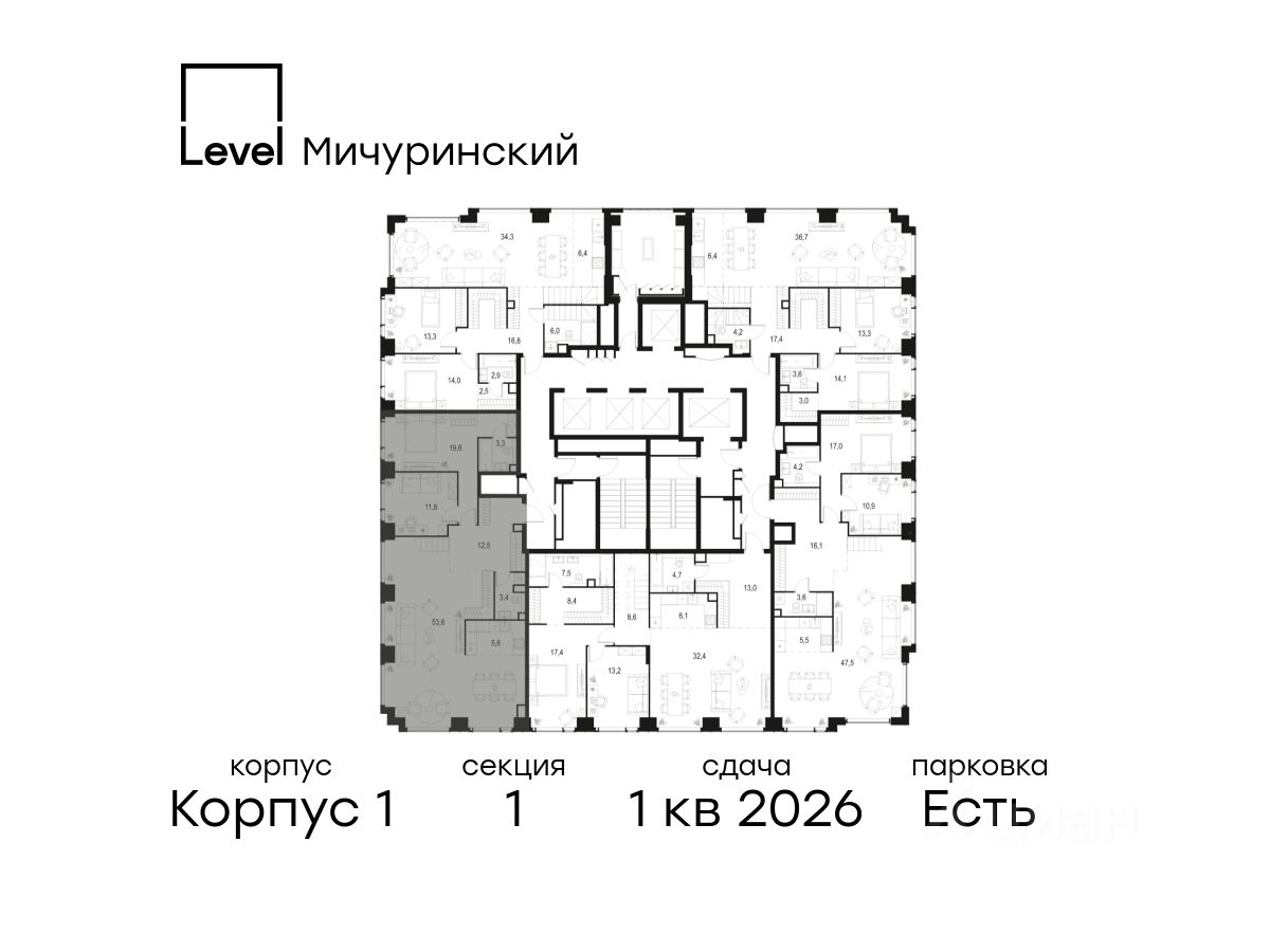 В жилом квартале, расположенном на границе с природным заказником "Долина реки Очаковки", продаётся многокомнатная квартира площадью 181.30 кв.м без отделки. Квартира расположена на 53 этаже 54-этажного корпуса 1 в жилом комплексе бизнес-класса Level Мичуринский (компания Level Group/Левел групп).