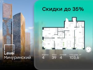 В жилом квартале, расположенном на границе с природным заказником "Долина реки Очаковки", продаётся 4-комнатная квартира площадью 103.60 кв.м без отделки. Квартира расположена на 39 этаже 45-этажного корпуса 4 в жилом комплексе бизнес-класса Level Мичуринский (компания Level Group/Левел групп).
