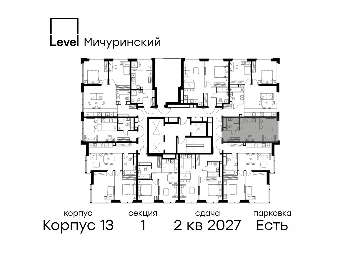 В жилом квартале, расположенном на границе с природным заказником "Долина реки Очаковки", продаётся студия площадью 28.00 кв.м без отделки. Квартира расположена на 19 этаже 31-этажного корпуса 13 в жилом комплексе бизнес-класса Level Мичуринский (компания Level Group/Левел групп).
