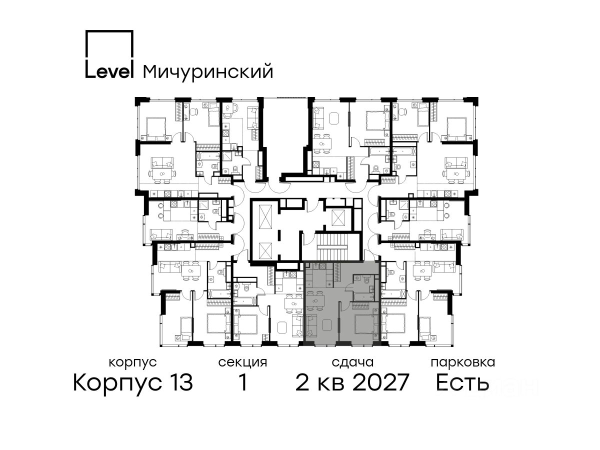 В жилом квартале, расположенном на границе с природным заказником "Долина реки Очаковки", продаётся 2-комнатная квартира площадью 43.50 кв.м без отделки. Квартира расположена на 24 этаже 31-этажного корпуса 13 в жилом комплексе бизнес-класса Level Мичуринский (компания Level Group/Левел групп).