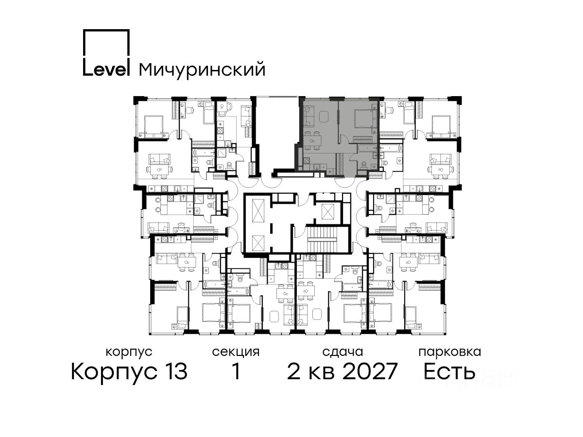 В жилом квартале, расположенном на границе с природным заказником "Долина реки Очаковки", продаётся 2-комнатная квартира площадью 44.20 кв.м без отделки. Квартира расположена на 22 этаже 31-этажного корпуса 13 в жилом комплексе бизнес-класса Level Мичуринский (компания Level Group/Левел групп).