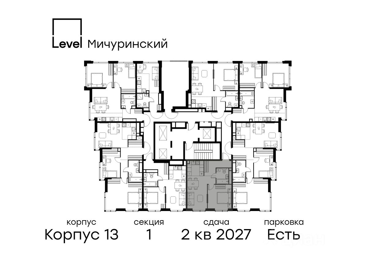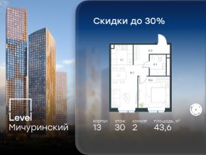 В жилом квартале, расположенном на границе с природным заказником "Долина реки Очаковки", продаётся 2-комнатная квартира площадью 43.60 кв.м без отделки. Квартира расположена на 30 этаже 31-этажного корпуса 13 в жилом комплексе бизнес-класса Level Мичуринский (компания Level Group/Левел групп).