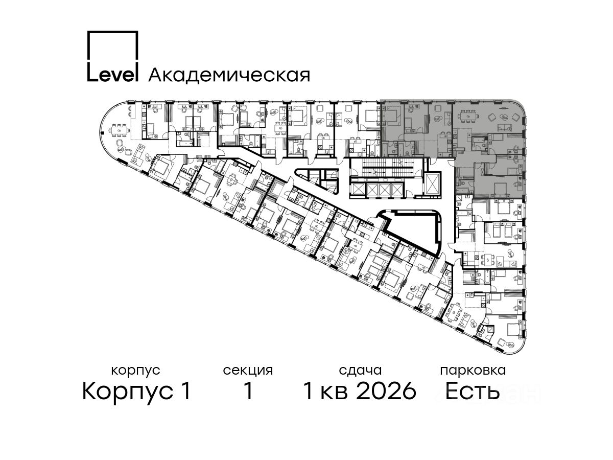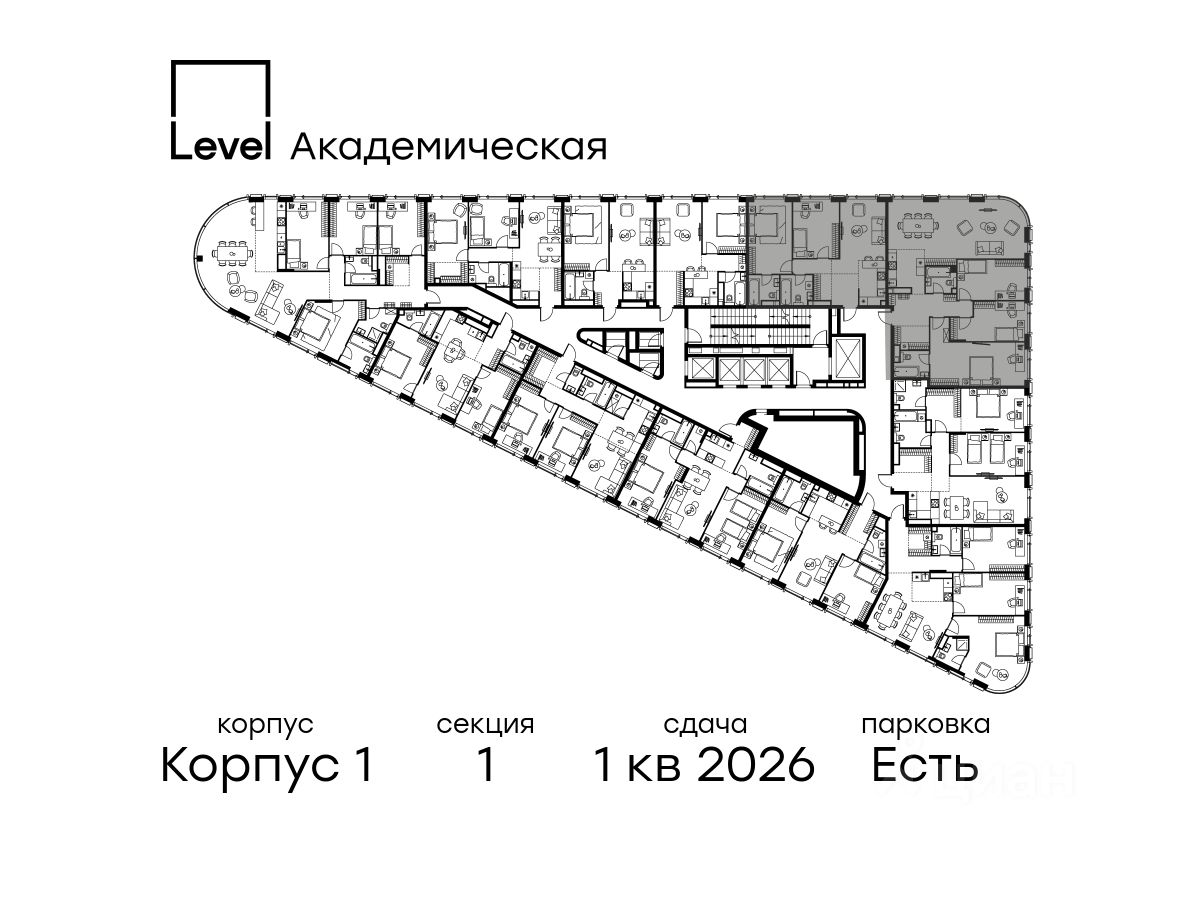 В Академическом районе продаётся многокомнатная квартира площадью 244.90 кв.м без отделки. Квартира расположена на 19-м этаже 19-этажного жилого комплекса бизнес-класса Level Академическая (компания Level Group).