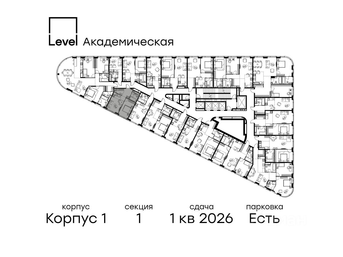 В Академическом районе продаётся 2-комнатная квартира площадью 38.10 кв.м без отделки. Квартира расположена на 14-м этаже 19-этажного жилого комплекса бизнес-класса Level Академическая (компания Level Group).