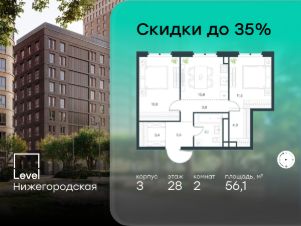 В активно развивающемся районе на юго-востоке столицы продается 2-комнатная квартира площадью 56,1 кв.м без отделки.. Квартира расположена на 28 этаже 37-этажного этажного корпуса 3 в жилом комплексе комфорт-класса Level Нижегородская (компания Level Group/Левел групп).