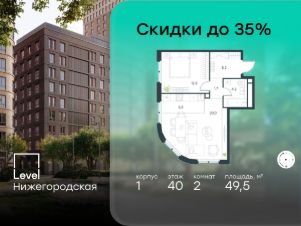 В активно развивающемся районе на юго-востоке столицы продается 2-комнатная квартира площадью 49,5 кв.м без отделки.. Квартира расположена на 40 этаже 45-этажного этажного корпуса 1 в жилом комплексе комфорт-класса Level Нижегородская (компания Level Group/Левел групп).
