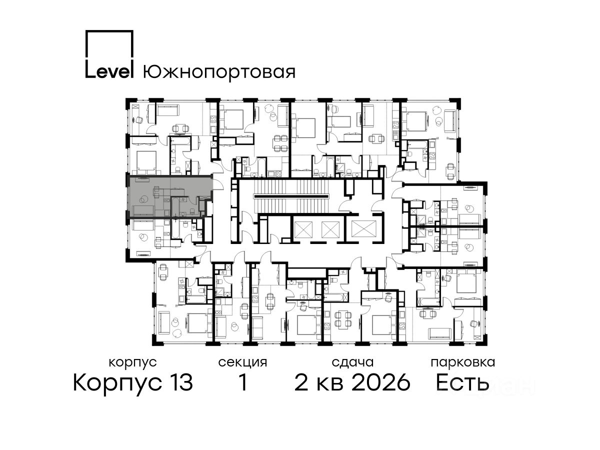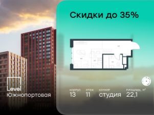 В северной части района Печатники продается студия-апартамент площадью 22.10 кв.м без отделки. Апартаменты расположены на 11 этаже 23-этажного корпуса 13 в жилом комплексе комфорт-класса Level Южнопортовая (компания Level Group/Левел групп).