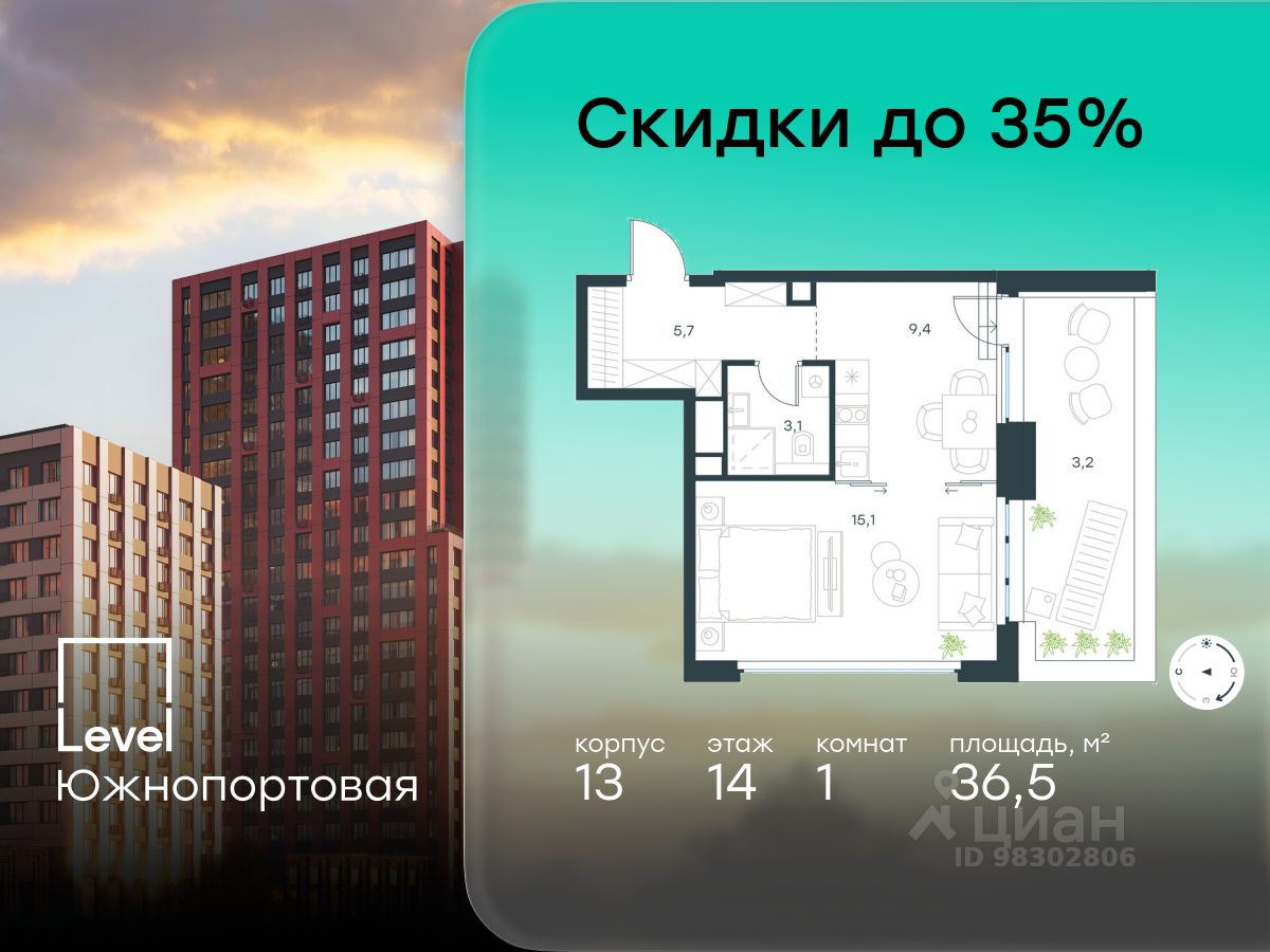 В северной части района Печатники продается 1-комнатный апартамент площадью 36.50 кв.м без отделки. Апартаменты расположены на 14 этаже 23-этажного корпуса 13 в жилом комплексе комфорт-класса Level Южнопортовая (компания Level Group/Левел групп).