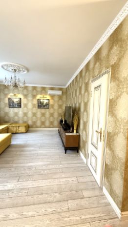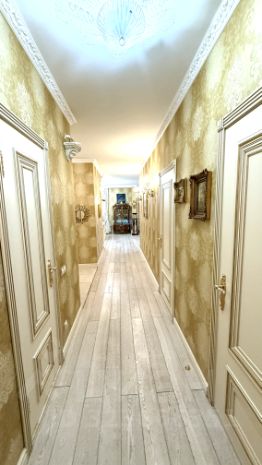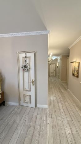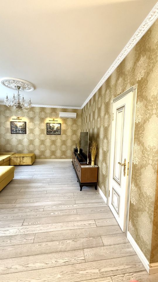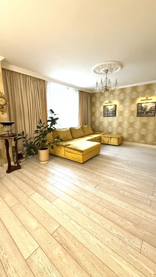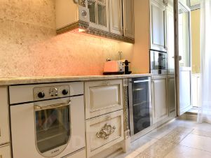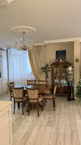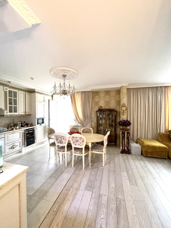 Качественный дизайнерский ремонт, стиль классический. Полы - инженерная доска, итальянская сантехника, система очистки воды, в каждой комнате кондиционеры Fujitsu. Большая кухня с техникой BOSCH: посудомойка, св печь, духовка, плита, холодильник; вместительный винный холодильник Indel B (Италия), дополнительная морозильная камера. В квартире продумано всё до мелочей, строили для себя, для большой семьи. Дети выросли, разъезжаемся.