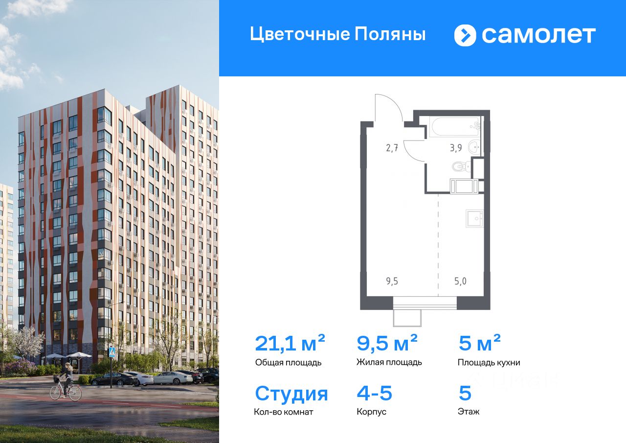 Строим кварталы для жизни с заботой о будущем. Предлагается квартира студия комфорт-класса 21,1 кв.м в корпусе 4-5 на 5 этаже, в ЖК "Цветочные Поляны"