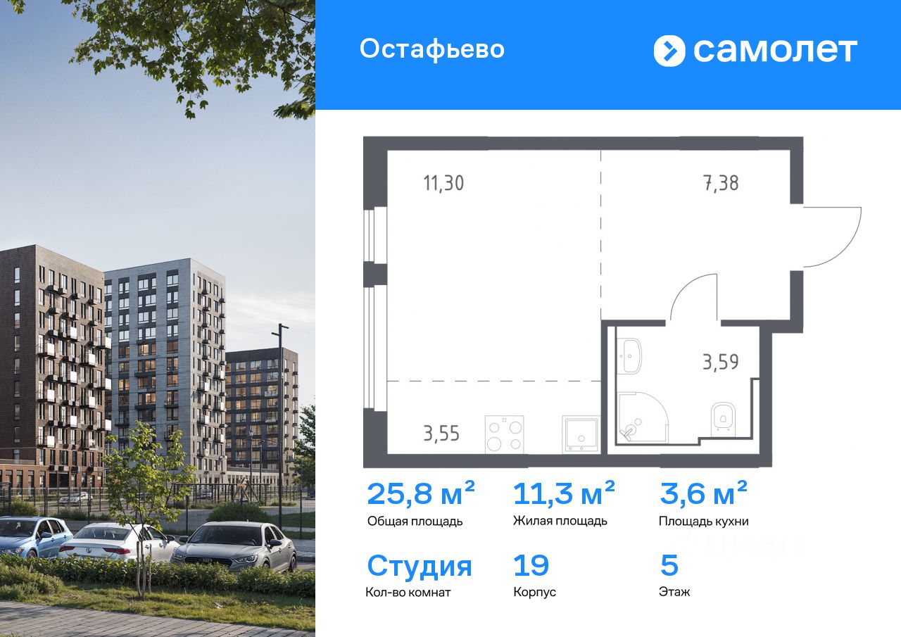 Строим кварталы для жизни с заботой о будущем. Предлагается квартира студия комфорт-класса 25,82 кв.м в корпусе 19 на 5 этаже, в ЖК "Остафьево"