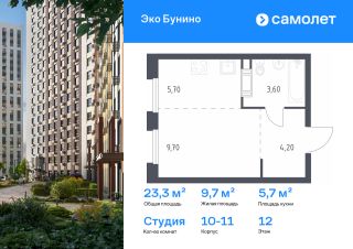 Строим кварталы для жизни с заботой о будущем. Предлагается квартира студия комфорт-класса 23,3 кв.м в корпусе 10-11 на 12 этаже, в ЖК "Эко Бунино"