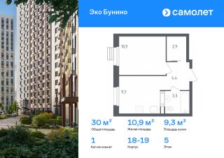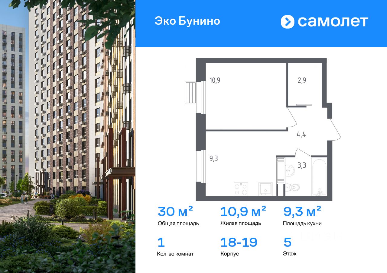 Строим кварталы для жизни с заботой о будущем. Предлагается 1-комнатная квартира комфорт-класса 30 кв.м в корпусе 18-19 на 5 этаже, в ЖК "Эко Бунино"