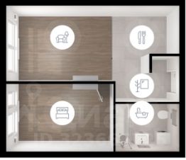 Планировкой квартиры предусмотрено: кухня-гостиная, спальня, совмещенный санузел, коридор.