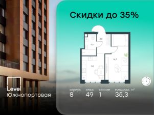 В северной части района Печатники продается 1-комнатная квартира площадью 35.30 кв.м без отделки. Квартира расположена на 49 этаже 49-этажного корпуса 8 в жилом комплексе комфорт-класса Level Южнопортовая (компания Level Group/Левел групп).