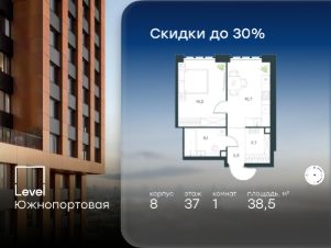В северной части района Печатники продается 1-комнатная квартира площадью 38.50 кв.м без отделки. Квартира расположена на 37 этаже 49-этажного корпуса 8 в жилом комплексе комфорт-класса Level Южнопортовая (компания Level Group/Левел групп).