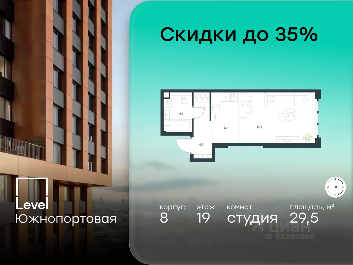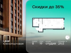 В северной части района Печатники продается студия площадью 29.50 кв.м без отделки. Квартира расположена на 19 этаже 49-этажного корпуса 8 в жилом комплексе комфорт-класса Level Южнопортовая (компания Level Group/Левел групп).