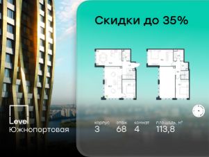 В северной части района Печатники продается 4-комнатная квартира площадью 113.80 кв.м без отделки. Квартира расположена на 68 этаже 68-этажного корпуса 3 в жилом комплексе комфорт-класса Level Южнопортовая (компания Level Group/Левел групп).