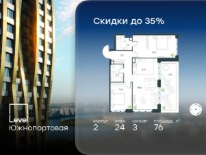 В северной части района Печатники продается 3-комнатная квартира с террасой площадью 76.00 кв.м без отделки. Квартира расположена на 24 этаже 47-этажного корпуса 2 в жилом комплексе комфорт-класса Level Южнопортовая (компания Level Group/Левел групп).