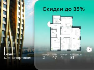 В северной части района Печатники продается 4-комнатная квартира площадью 81.00 кв.м без отделки. Квартира расположена на 47 этаже 47-этажного корпуса 2 в жилом комплексе комфорт-класса Level Южнопортовая (компания Level Group/Левел групп).