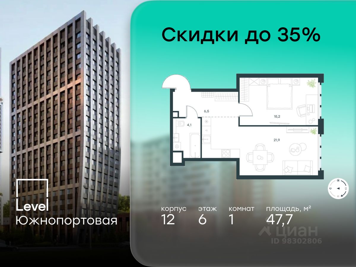 В северной части района Печатники продается 1-комнатная квартира площадью 47.70 кв.м без отделки. Квартира расположена на 6 этаже 20-этажного корпуса 12 в жилом комплексе комфорт-класса Level Южнопортовая (компания Level Group/Левел групп).