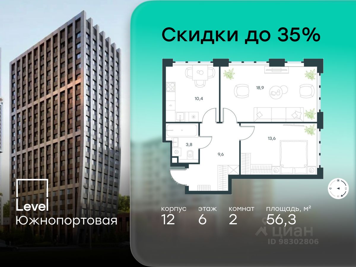 В северной части района Печатники продается 2-комнатная квартира площадью 56.30 кв.м без отделки. Квартира расположена на 6 этаже 20-этажного корпуса 12 в жилом комплексе комфорт-класса Level Южнопортовая (компания Level Group/Левел групп).