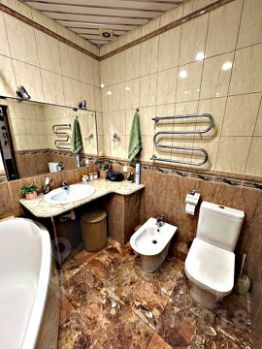 KВAРТИРЕ: светлая с шикарной планировкой четырёхкомнатная 125м2 с дизайнерским ремонтом из высокотехнологических материалов с применением ценных пород дерева, что обеспечивает всегда свежий воздух в квартире. Просторная кухня 19м2 с кухонным гарнитуром и всей встроенной фирменной техникой от известных производителей, а также барной стойкой. Изолированный три комнаты по 16м2 каждая и огромной гостиной 20м2. Два сан узла отделанные керамической плиткой, один из который с ванной и биде, второй с душевой кабиной. По всему периметру квартиры многоуровневые потолки с светодиодной подсветкой. Установлена Сплит-Система Кондиционирования для комфортной температуры под вас в любое время года в градусах. Высота потолков 3.2 метра что расширяет визуально пространство. Самый лучший вариант для большой семьи.