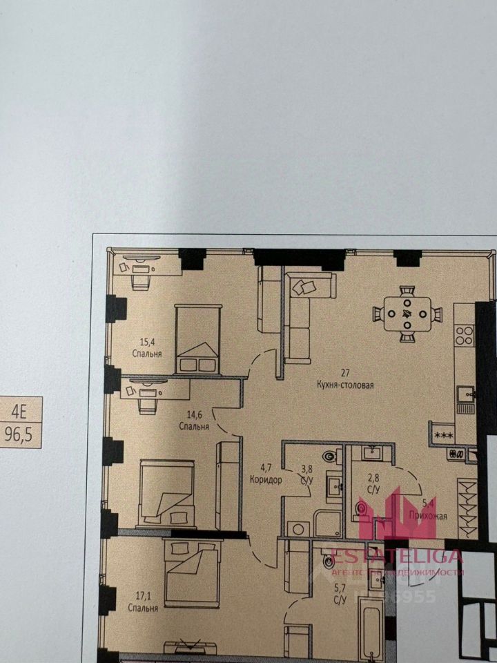 Id 58073. В ПРОДАЖЕ КВАРТИРА ФОРМАТА ЕВРО-ЧЕТЫРЕ 96,5 м²